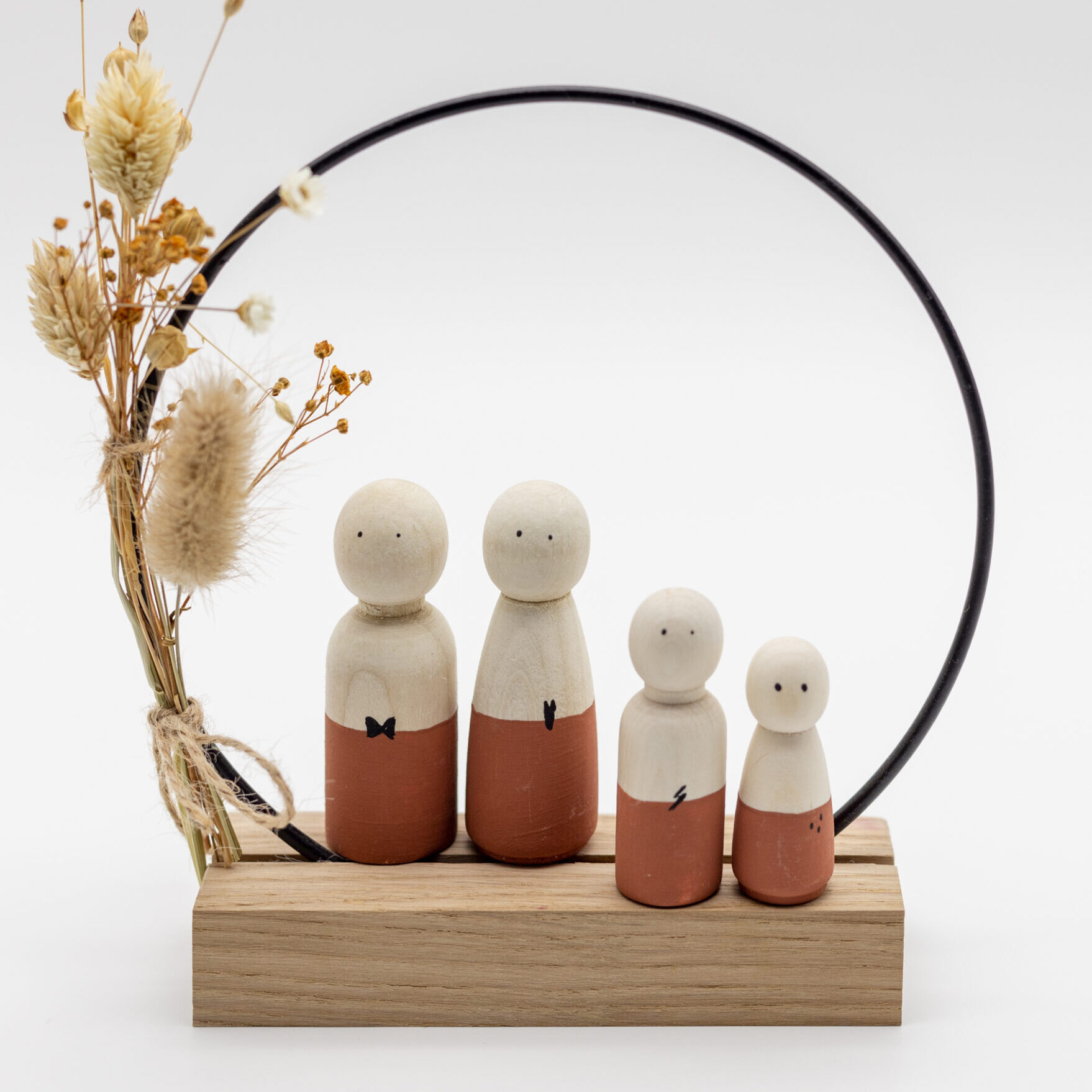 Bezorg iemand een blijvende herinnering met dit mooie cadeau. Dit cadeau bevat een stijlvolle houten standaard en een prachtige zwart metalen ring met droogbloemen. Perfect te combineren met de Tuurelur pegdoll bruidspaar of een Tuurelur pegdoll familie. Zo maak je het huwelijks cadeau bijzonder & uniek!